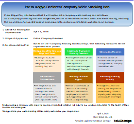 We placed a health promotion officer under Chief Health Officer, and the employee relations DEPT. under him serves as the secretariat for the entire company. We will integrate various health measures into the policies and activities of the central and regional safety and health committees, and promote various measures in cooperation with health insurance associations and labor unions.